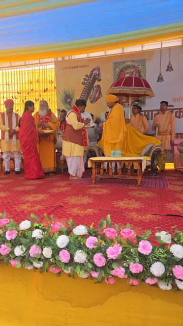 रामेष्ट वेद संस्कृत गुरुकुलम में आयोजित उपनयन संस्कार एवं वेदारंभ संस्कार के अवसर पर महंत डॉ. नरेश पुरी महाराज द्वारा विद्यार्थियों को वैदिक पुस्तकों का वितरण किया गया।